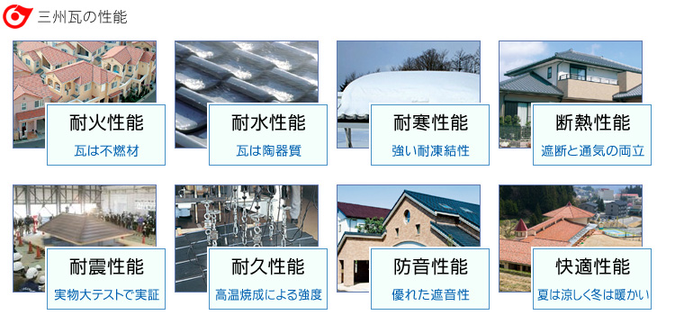 昔の農家によく見られた茅葺き屋根やお寺などの檜皮葺きなどとともに、粘土瓦は、1400年以上もの歴史を持つすぐれた屋根材として、人々に親しまれてきました。 屋根材は現在、陶器瓦のような窯業系、自然系、金属系、化学系、その他(ソーラー瓦など)を合わせ、約50種類もあるといわれています。その中で、窯業系の中心を占める瓦は、他の屋根材に比べ、次のような点が優れているとされています。